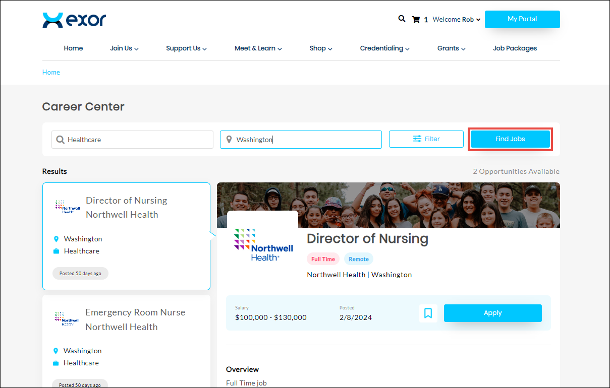 1.  Navigate to your Home page > Join Us > Career Center and click View Open Jobs.