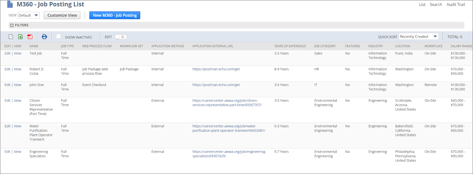 Additionally, you can view a job posting in detail or modify a job posting by clicking EDIT/ VIEW respectively in the desired Job Posting row.