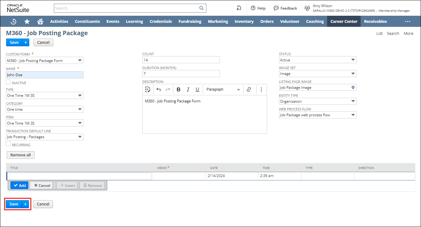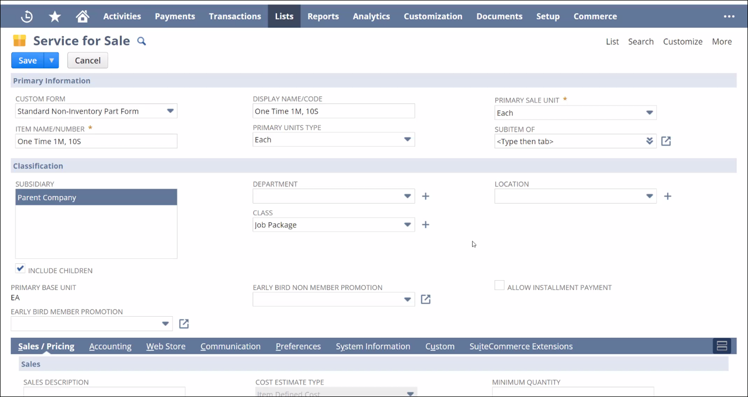 Create an Item by navigating to Lists > Accounting > Items > New. For more information, please refer to for a Job Posting Package.