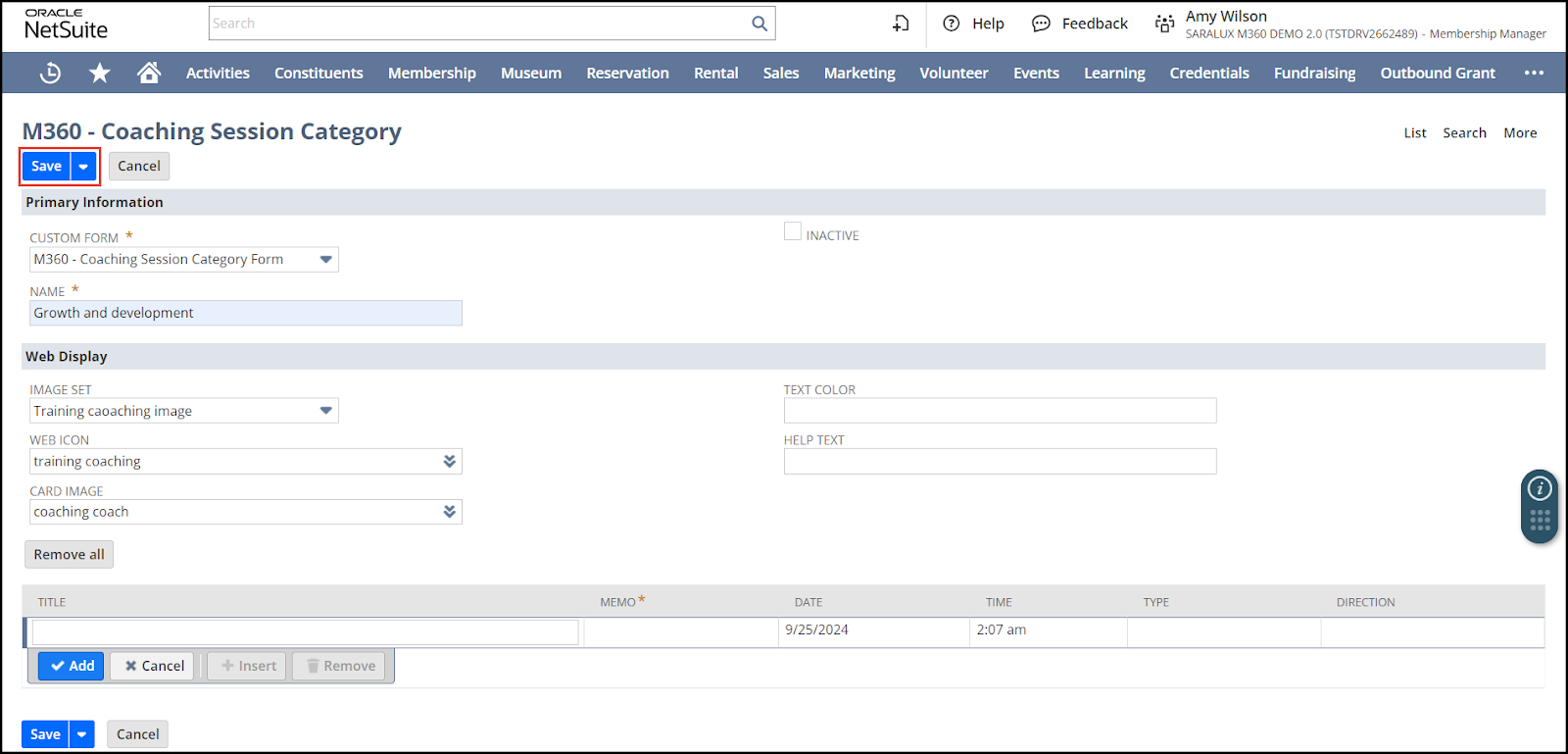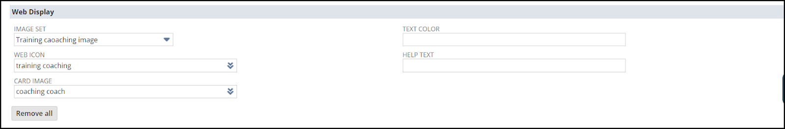 The Web Display section within the Coaching Session Category form allows you to set up the appearance of the sessions under this category on the web portal.