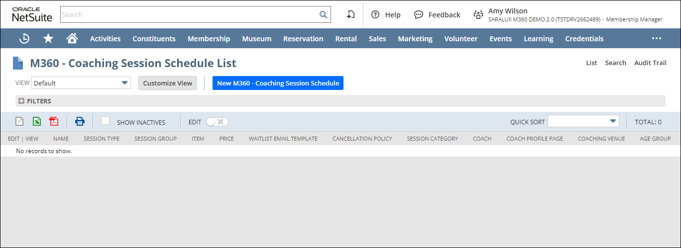 Session The Sessions section allows you to add and manage schedules for all coaching sessions. 1. Navigate to > Coaching > Session > and click Coaching Session Schedule. The Coaching Session Schedule List page is displayed.