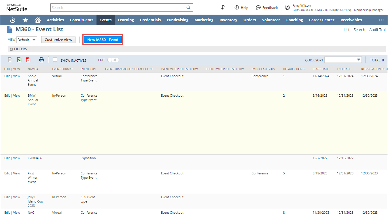 You can update or view in detail the event added to the list by clicking on Edit/ View in the desired Event row.