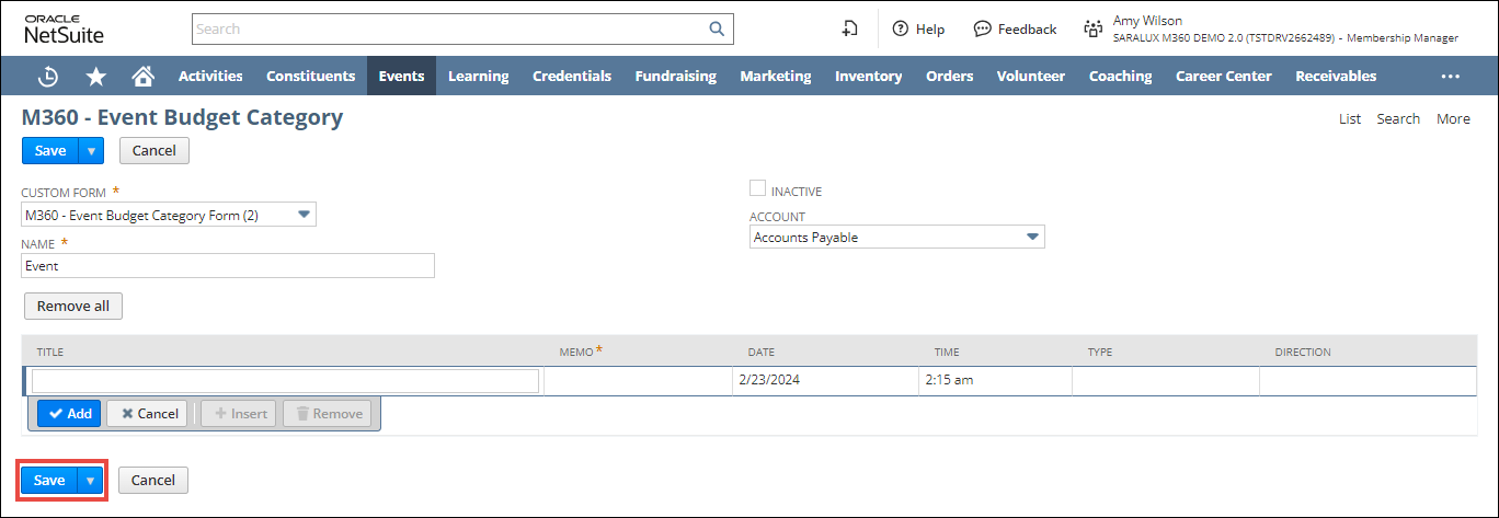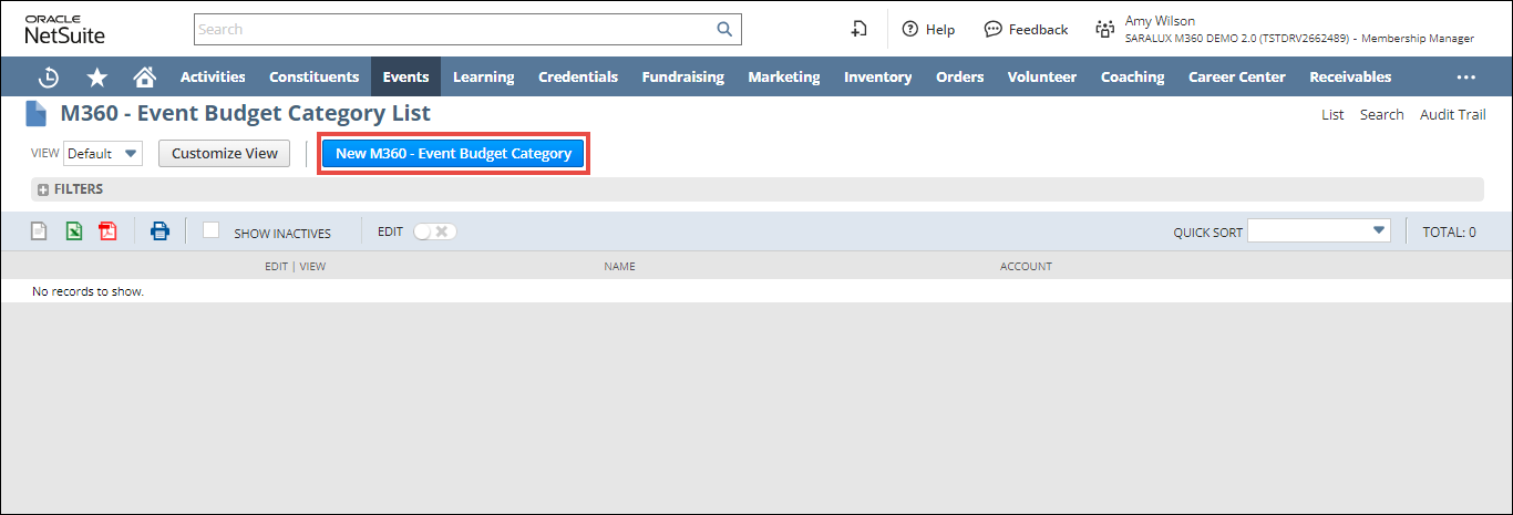 Note:  You can alternatively add a new Budget Category by navigating to Events > Setup > Event Budget Category and clicking New.