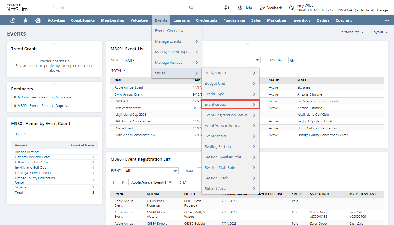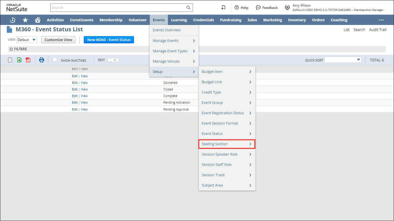 You can follow similar steps to also create a Seating Section by navigating to Events > Setup > Seating Section.