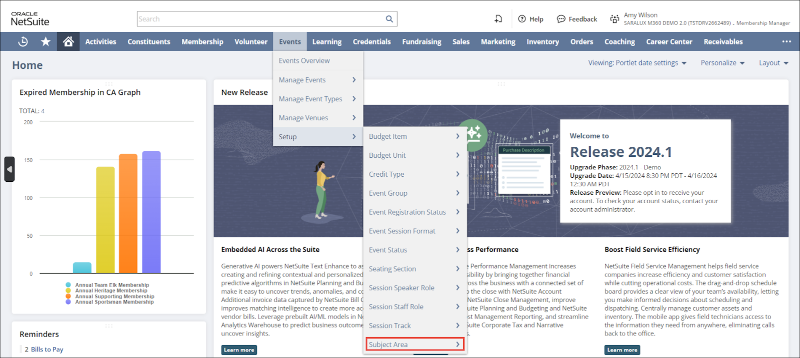 You can follow similar steps to incorporate Subject Area by navigating to Events > Setup > Subject Area.