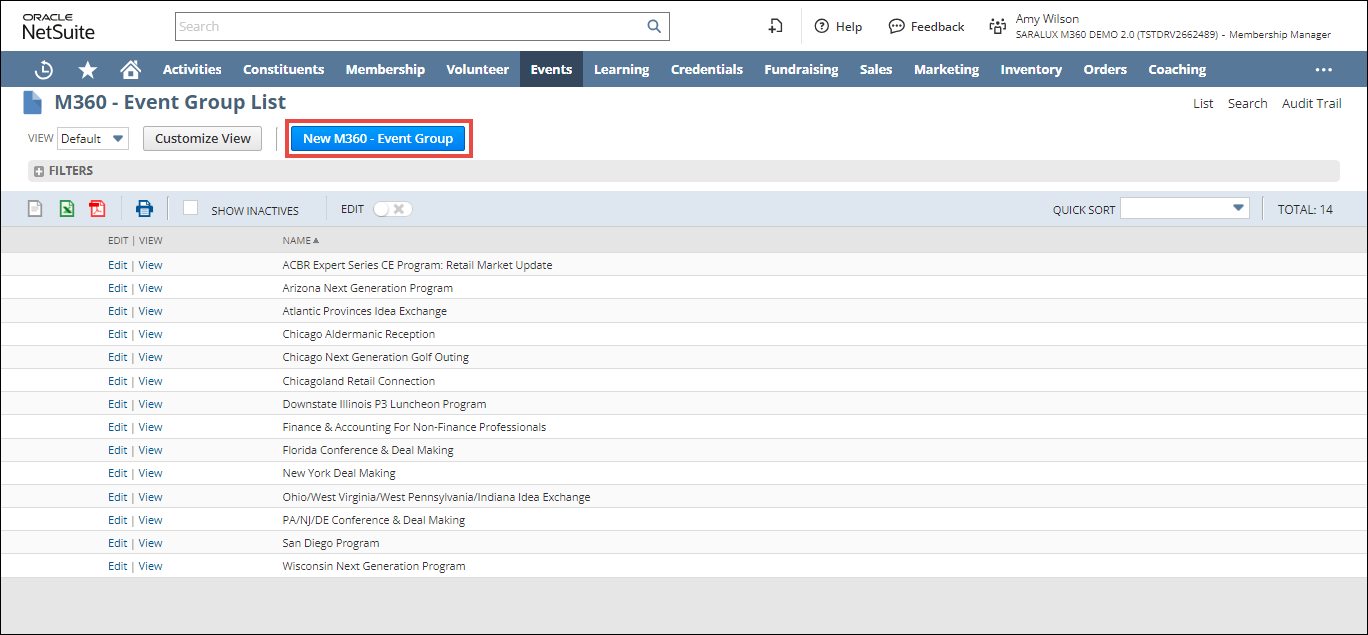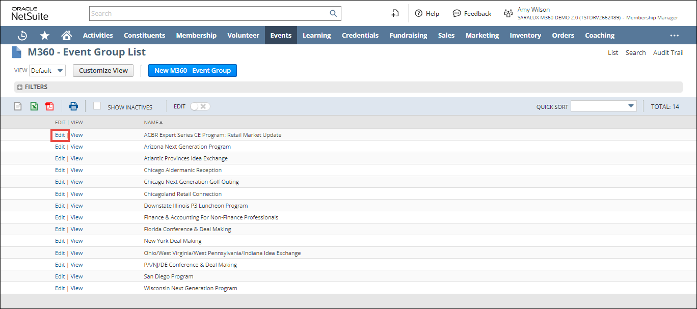 To edit an event group, navigate to M360 - Event Group List page and click Edit in the row of the event group you wish to modify,