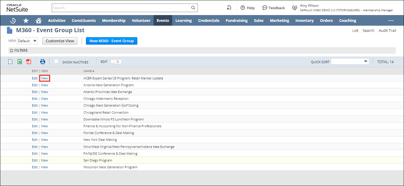 To view in detail an event group, navigate to M360 - Event Group List page and click View in the desired event group row.