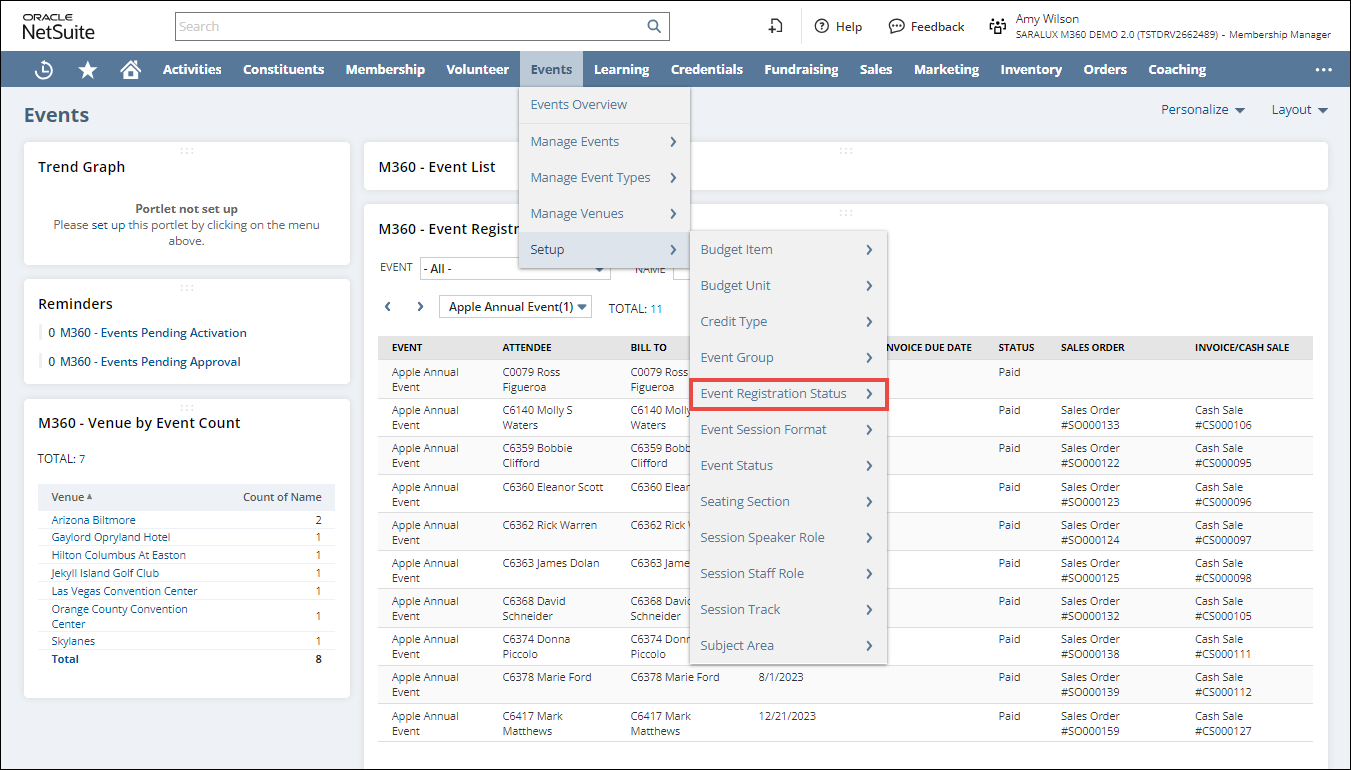 You can follow similar steps to create Event Registration Status by navigating to Events > Setup > Event Registration Status.
