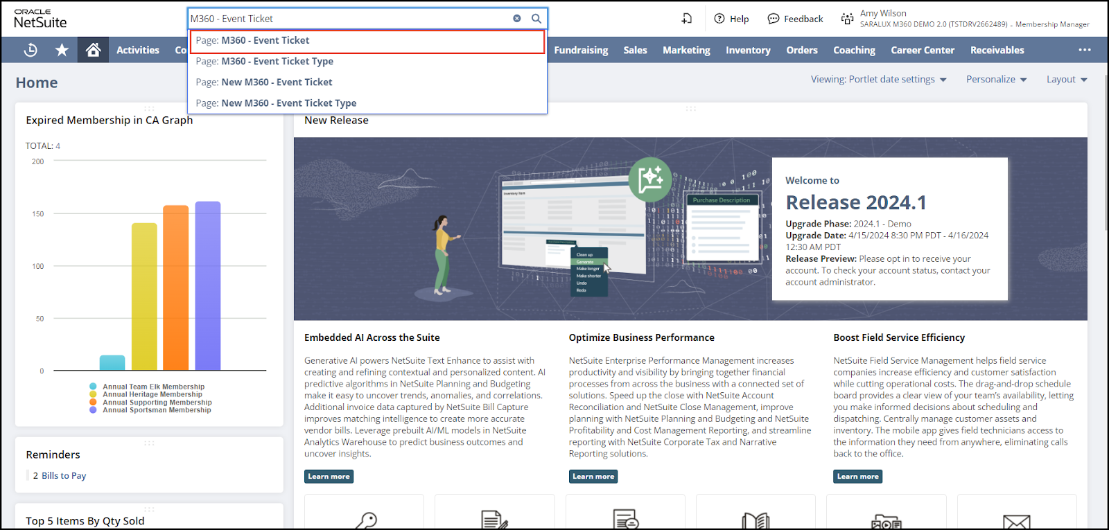 1. Navigate to Mem360 Dashboard and enter M360 - Event Ticket in the Search field.
