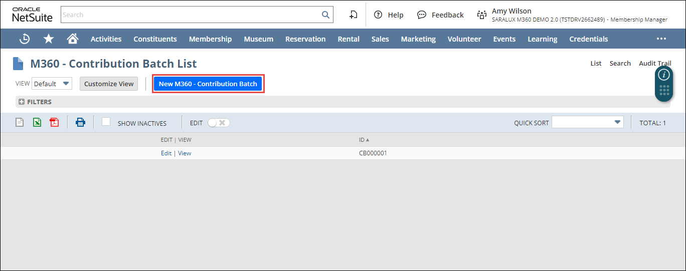 2. Click New M360 - Contribution Batch.