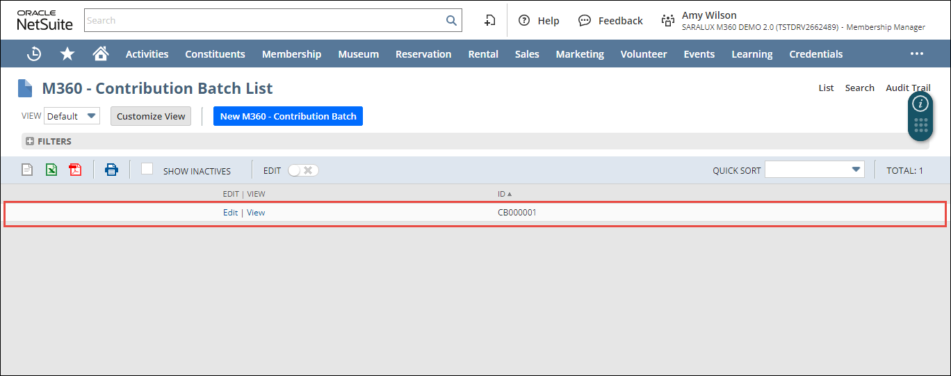 The Contribution Batch List page is displayed.