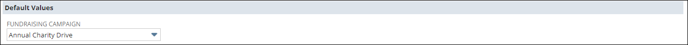 The Default Values section within the Contribution Batch form allows the setting up of a default campaign to be associated with all the contributions within this batch.