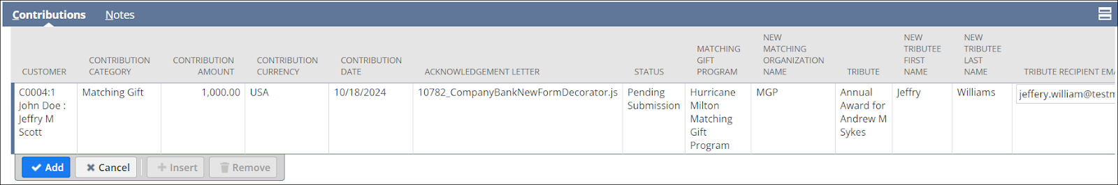 potential fundraising opportunity associated with this contribution batch
