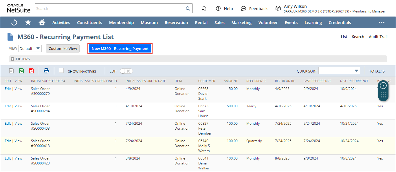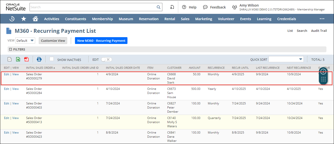Note: You can update or view the recurring payment details by clicking Edit/ View in the desired row.