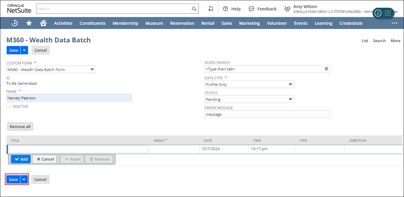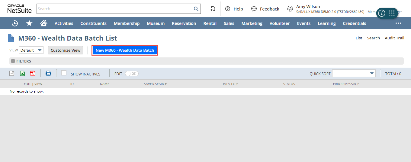 By default, the M360 - Wealth Data Batch Form Form is selected.