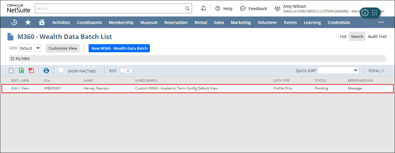 Note: You can update or view the wealth data batch details by clicking Edit/ View in the desired row.