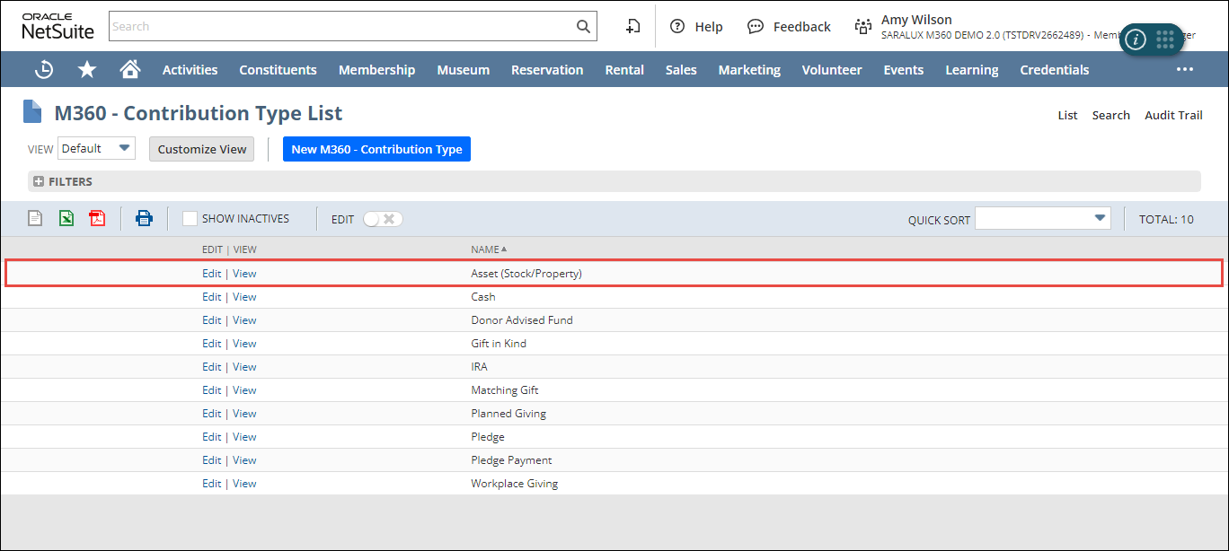 Note: You can update or view the contribution type details by clicking Edit/ View in the desired row.