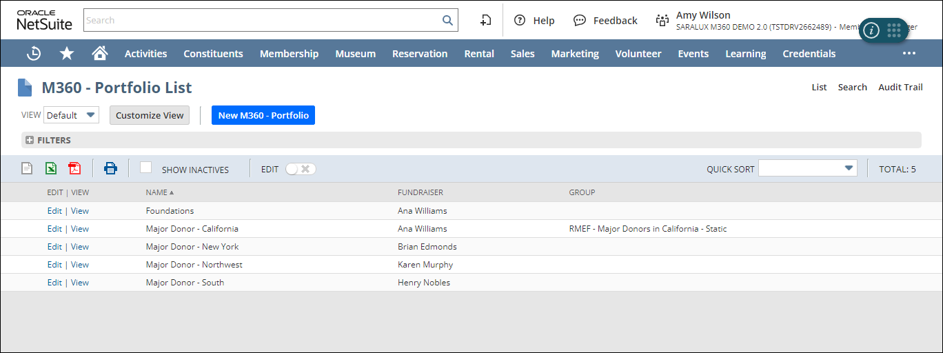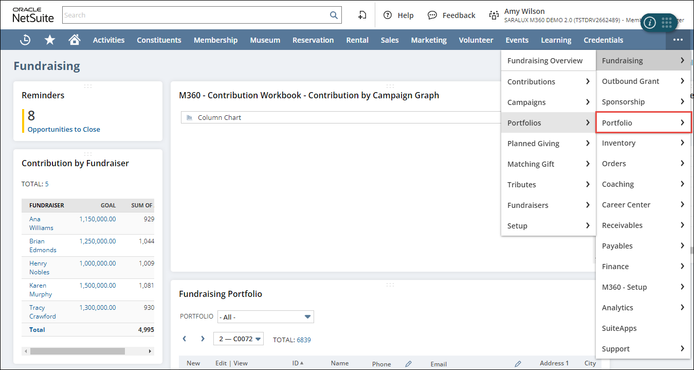 The Portfolio section allows you to configure the details of the individuals or organizations involved in the fundraising campaigns or initiatives.