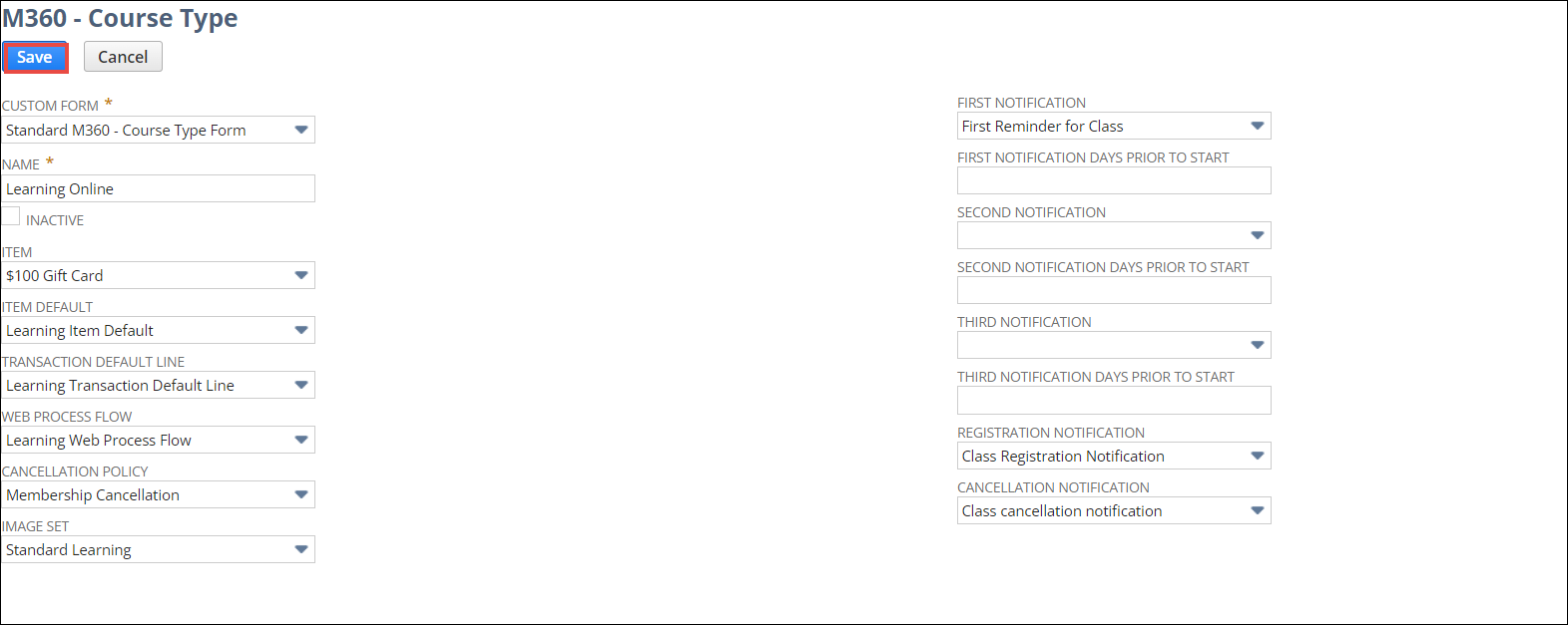 By default, the M360-Course Type Form is selected.