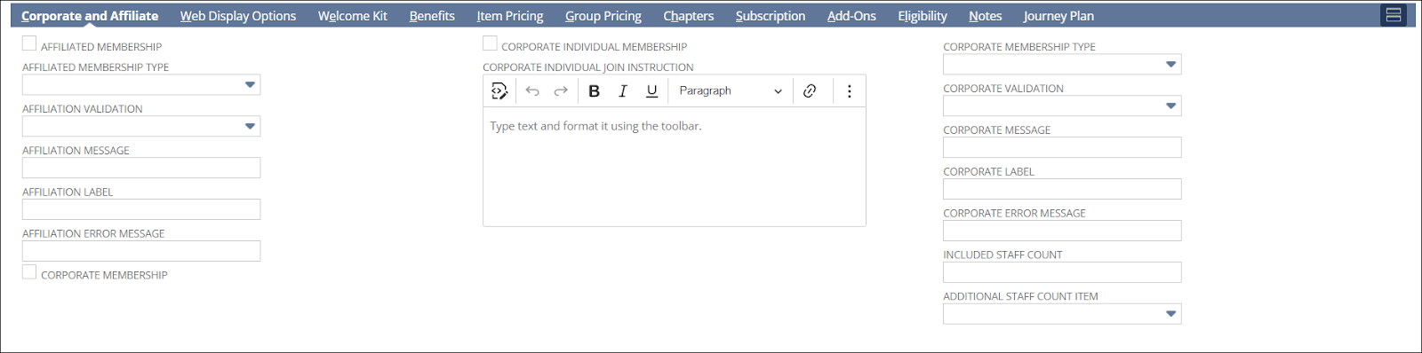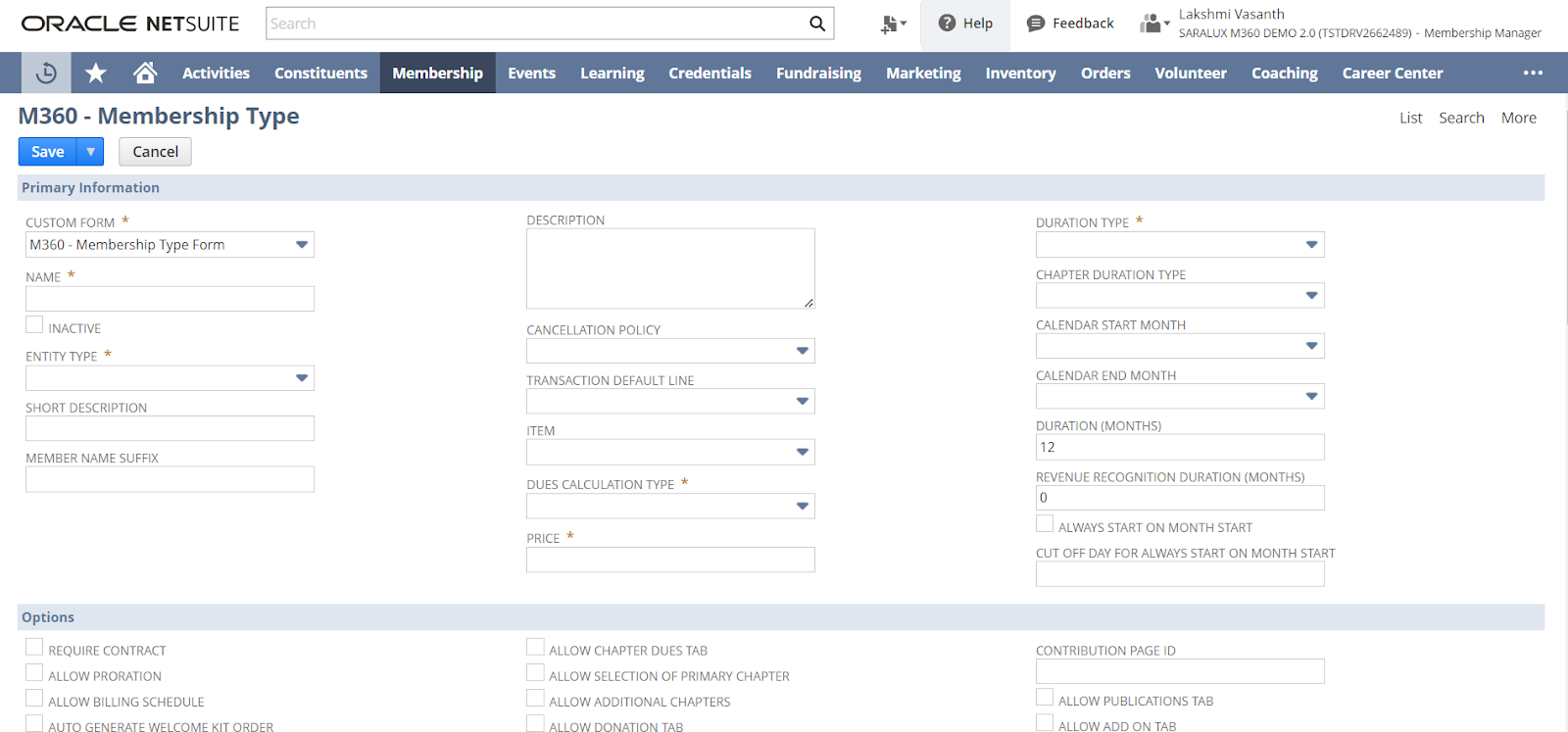 The Membership Type form has various sub-sections and we learn about each of them in the following links: