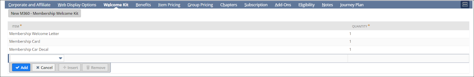 Note that the add-ons are the merchandised NetSuite items available to the members of this membership type.