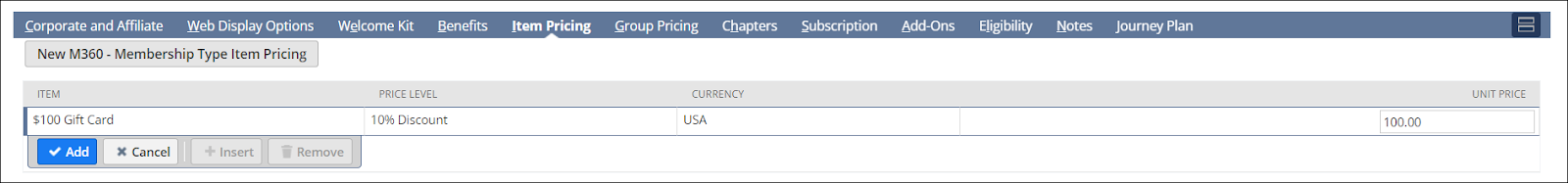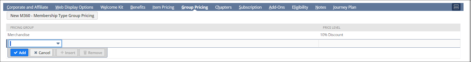 Note: Generally, Group Pricing is preferred to Item Pricing on a membership type.