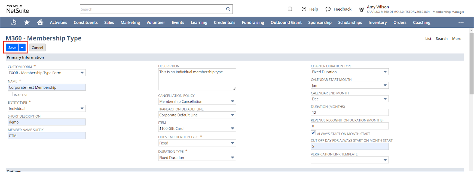 Note: In this section, we are illustrating how to create an Individual Membership Type.