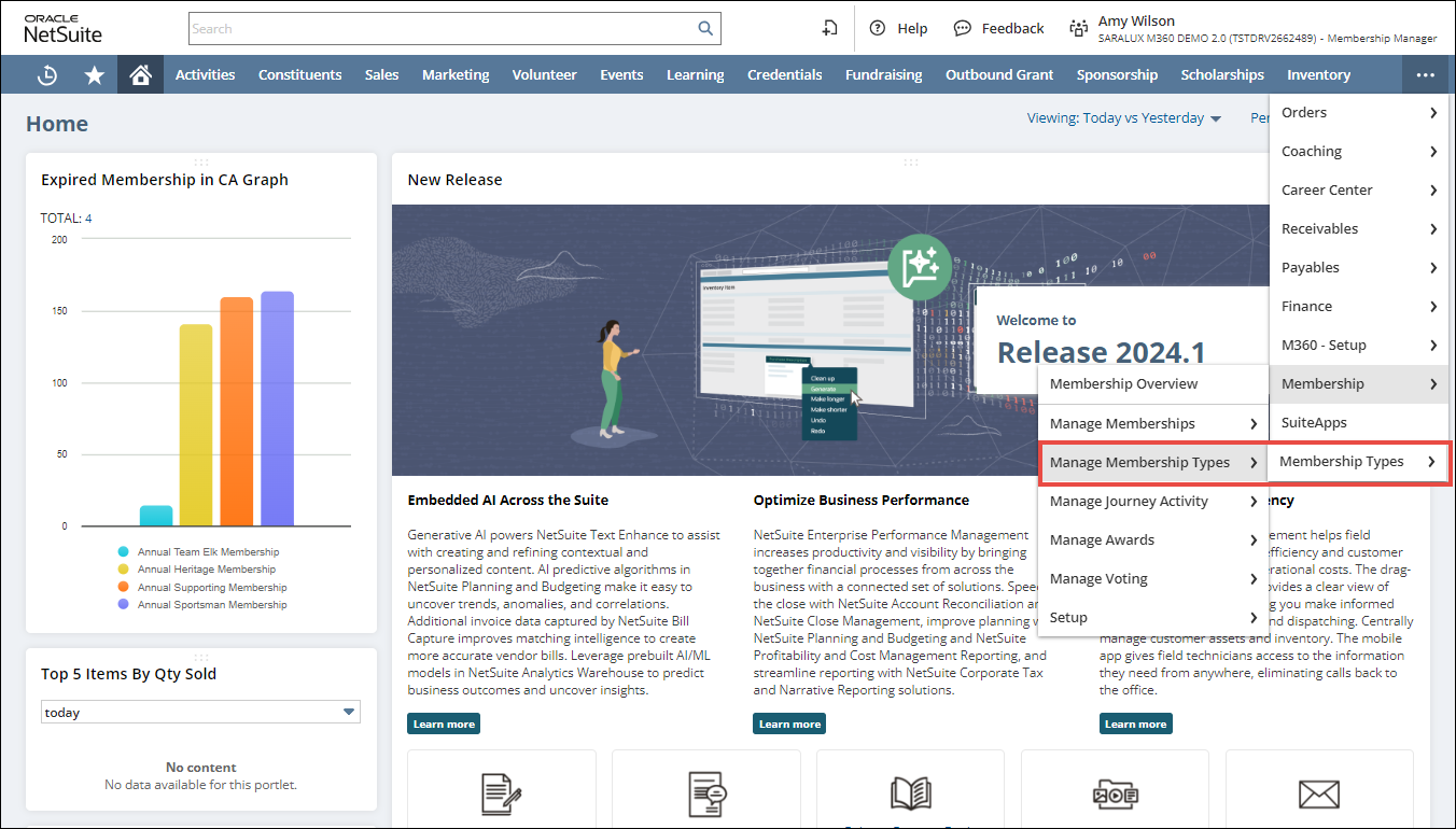 1. Navigate to Memberships > Manage Membership Types > Membership Types.