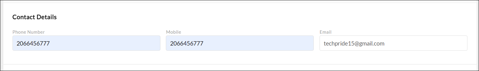 3. In the Contact Details section, enter the primary phone number of the account owner in the Phone Number field.