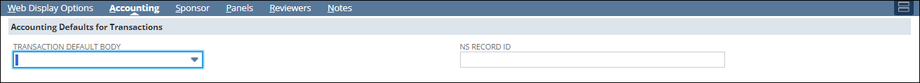 The Accounting section within the Outbound Grant form allows you to add default accounting information for the outbound grant.