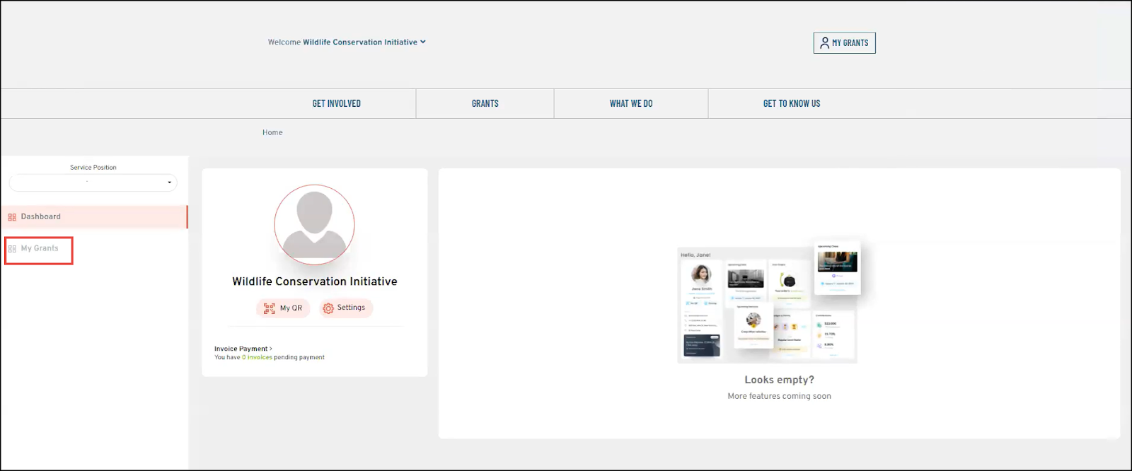 The confirmation notification is displayed.  The client can view the progress reports submitted at the back end by navigating to the Outbound Grant > Progress Reports.