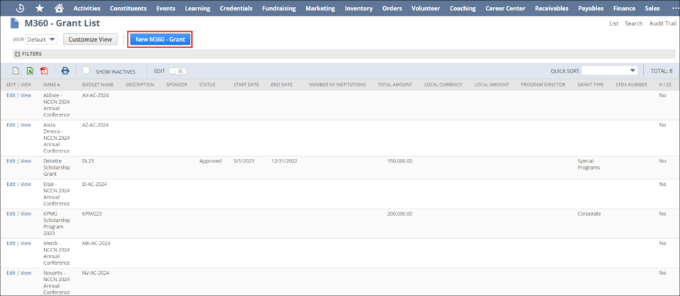You can create and manage grants including viewing/ editing already listed grants, filtering, searching, and exporting the data for any offline reference or documentation.