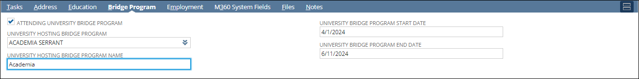 UNIVERSITY BRIDGE PROGRAM END DATE