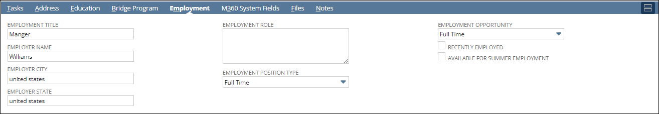 The Employment section within the Scholarship Application form gathers information regarding the applicant’s employment details.