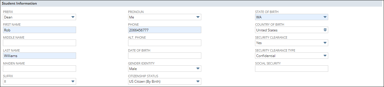 The Student Information section within the Scholarship Application form gathers essential data regrading the scholarship applicant.