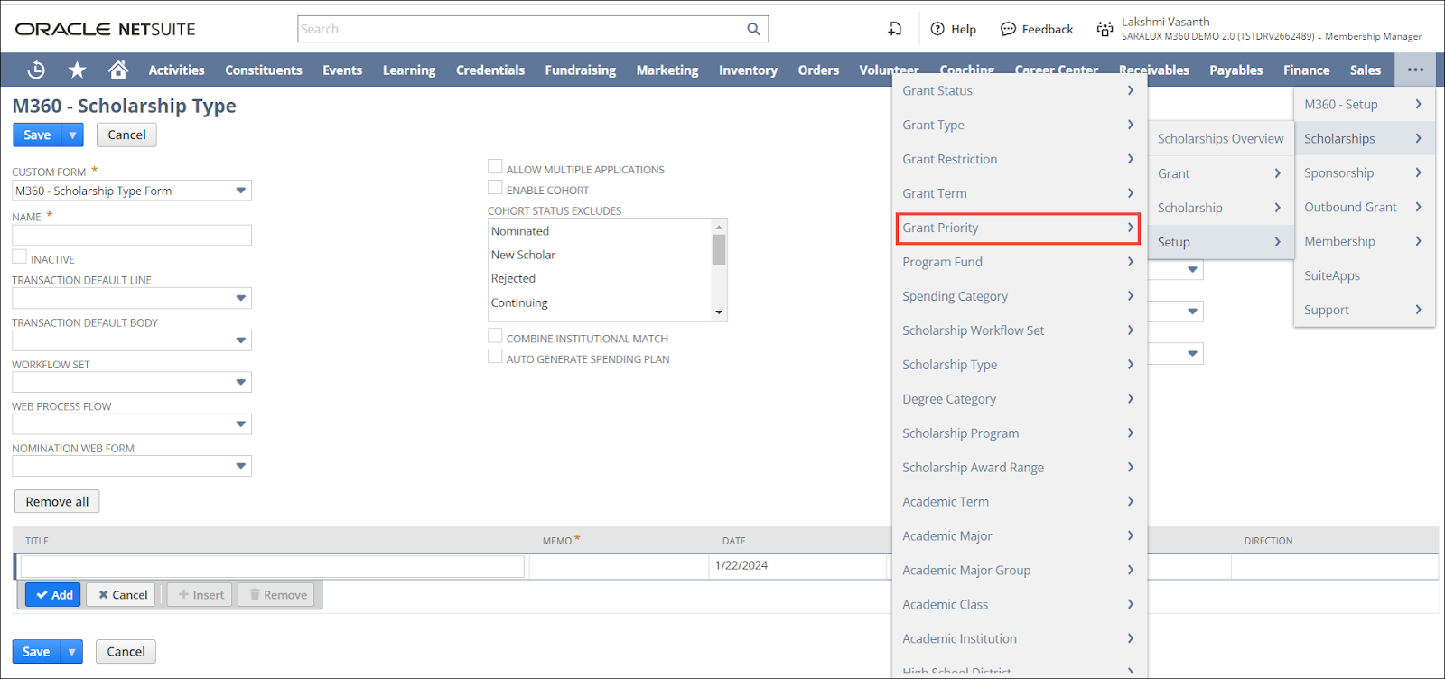 > Scholarships > Setup > and click Grant Priority.