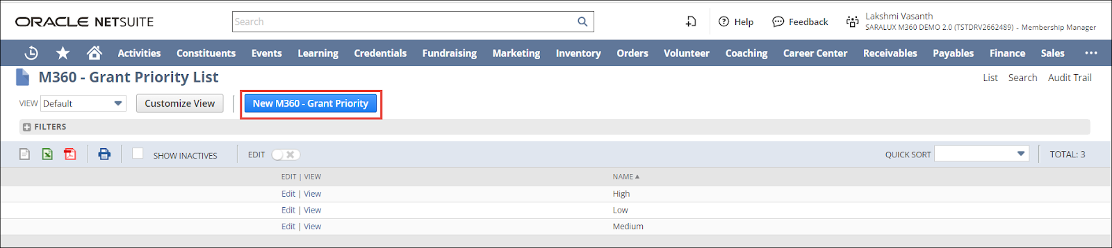 The M360 - Grant Priority List page is displayed.