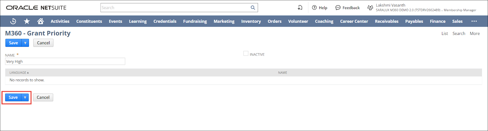 The M360 - Grant Priority form is displayed.