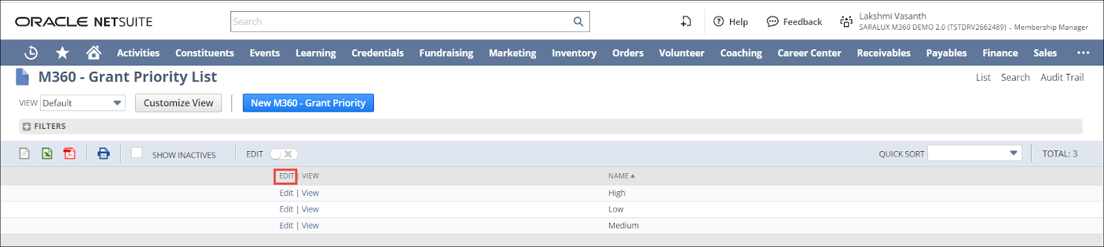 To edit a grant priority, navigate to