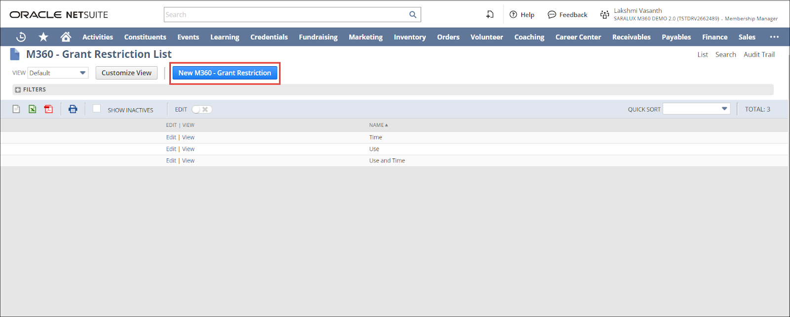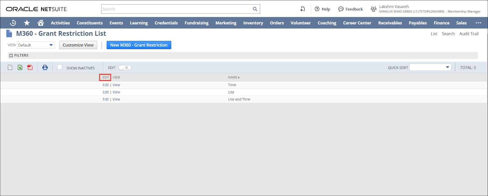 > Scholarships > Setup > Grant Restriction > M360 - Grant Restriction List page and click Edit in the row of the restriction you wish to modify,