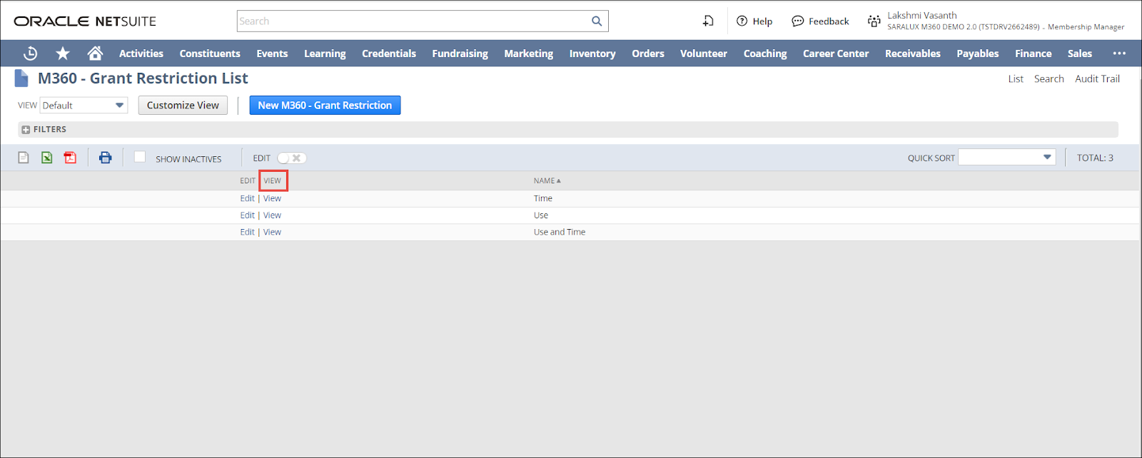> Scholarships > Setup > Grant Status > M360 - Grant Restriction List page and click View in the row of the grant restriction you wish to view in detail.