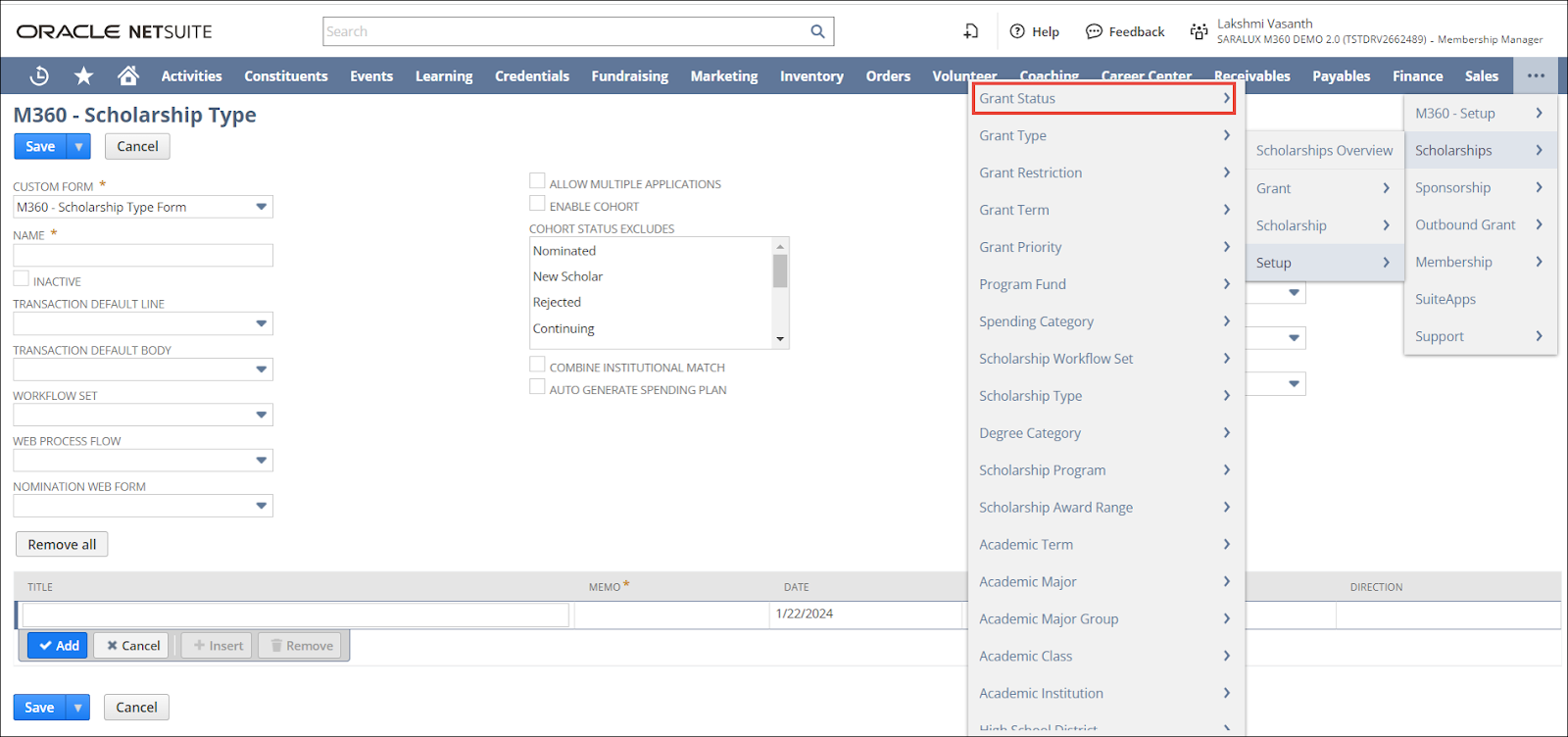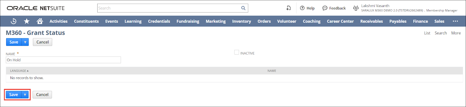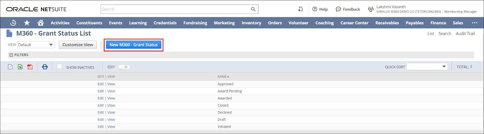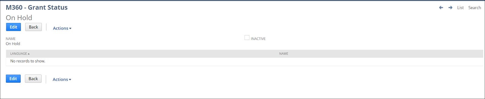 The grant status indicates the current stage of a grant. Mem360 allows you to add a new status for a grant if the desired status does not exist in the M360 - Grant Status List.