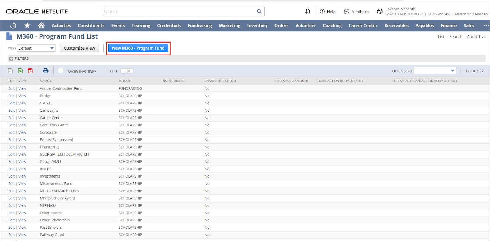 2.  Click New M360 - Program Fund.