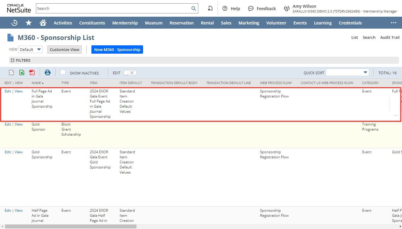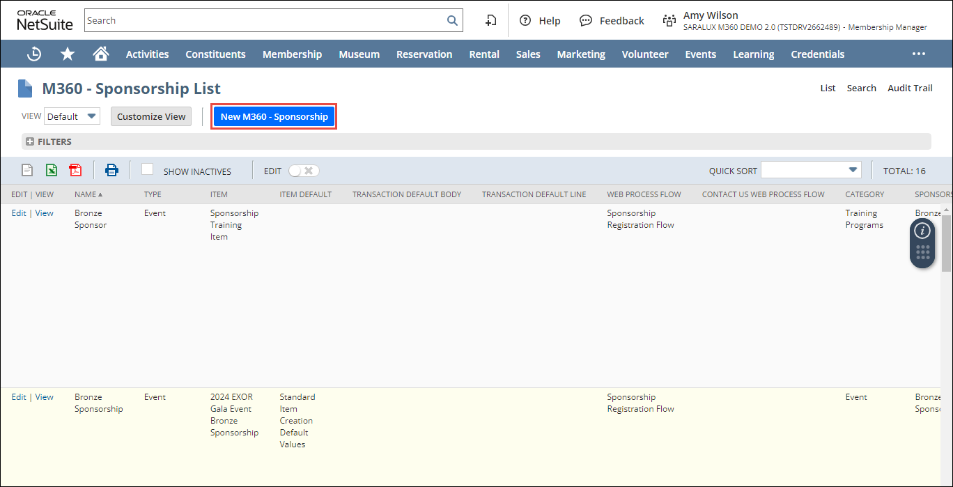 1. On the M360 - Sponsorship List page, click New M360 - Sponsorship.