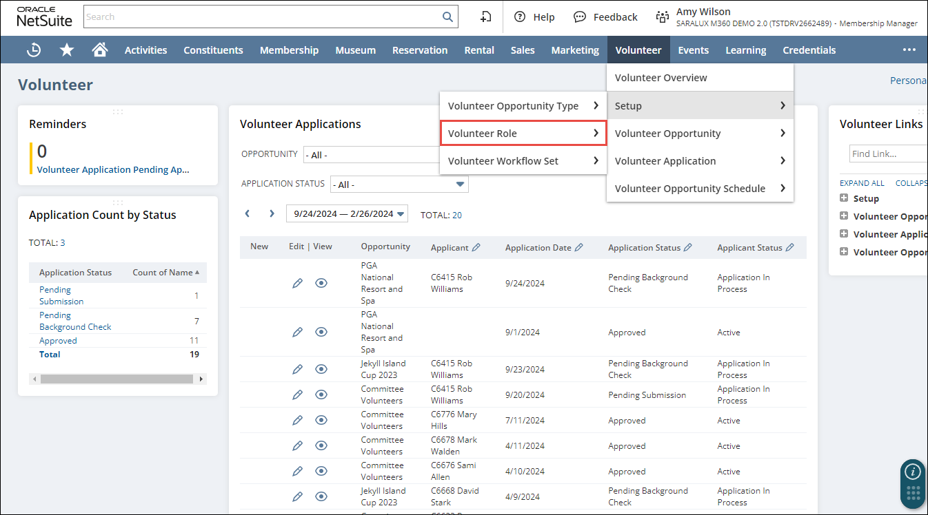 1. Navigate to Volunteer > Setup > Volunteer Role.