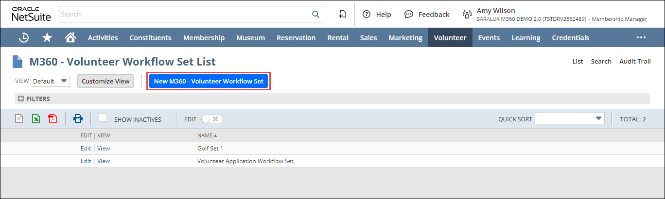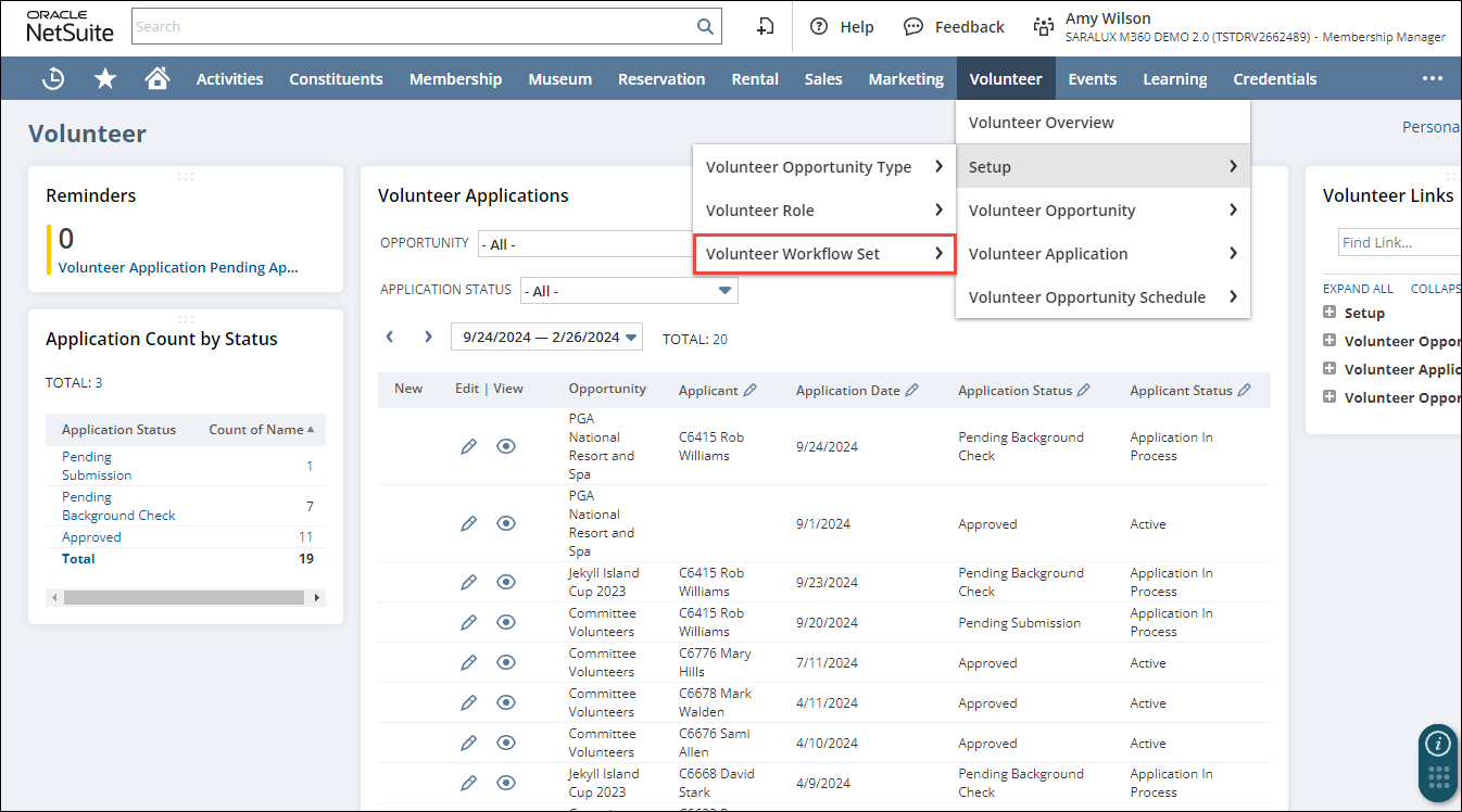 1. Navigate to Volunteer > Setup > Volunteer Workflow Set.