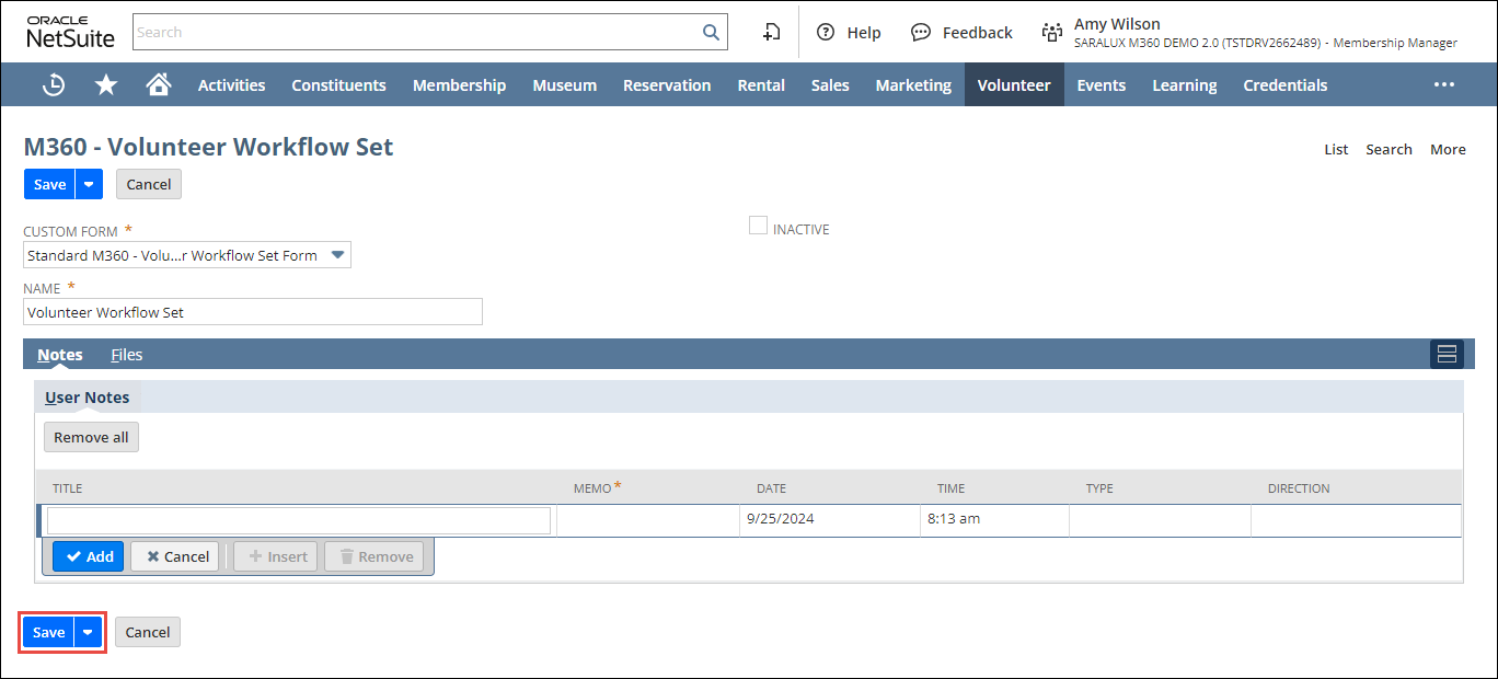 By default, the M360 - Volunteer Workflow Set Form is selected.