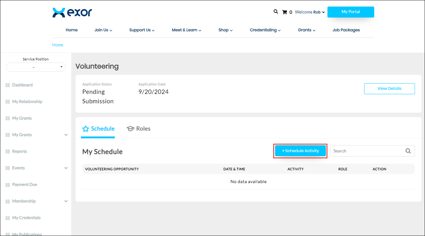 1. Navigate to your My Portal > Dashboard > Volunteer.