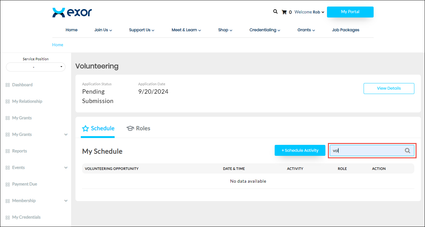 You can search for an activity scheduled on a volunteer opportunity by following the steps below.