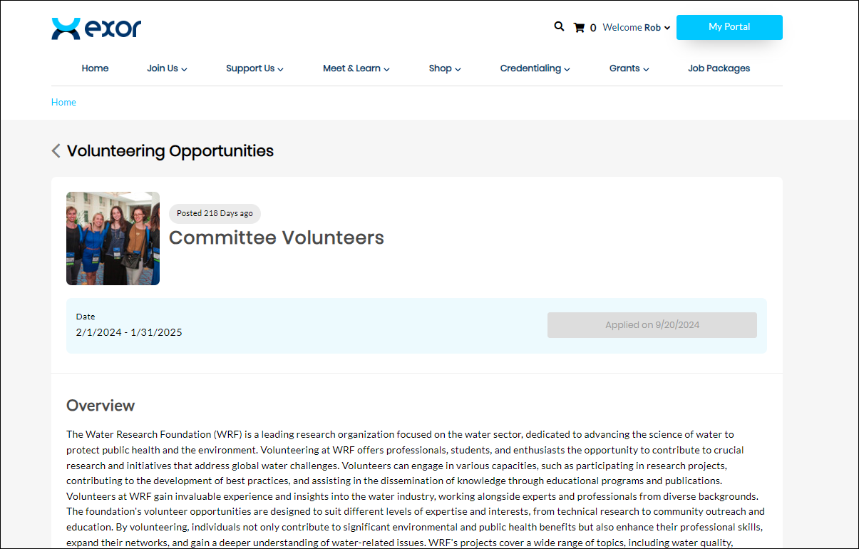 The selected Volunteering Opportunities page is displayed.